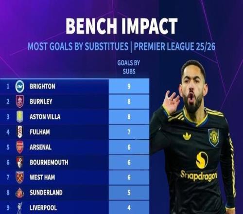 替补制胜,库尼亚是本赛季英超首位替补登场进球的曼联球员